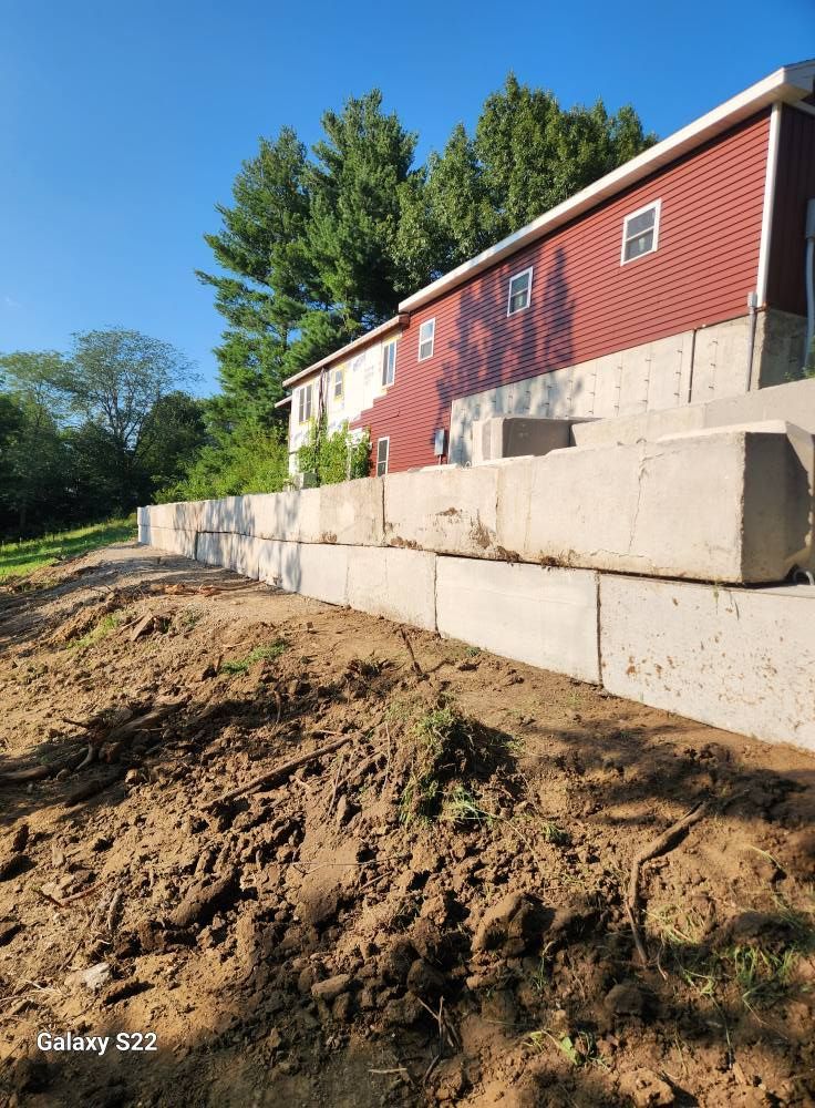 Husband Family Excavating builds retaining walls for residential, farm, and commercial sites in Gladstone and the surrounding area. Walls are designed to manage elevation changes, support driveways and access roads, and protect structures from soil movement. Installation is often coordinated with grading or site preparation projects to stabilize land before or during construction.